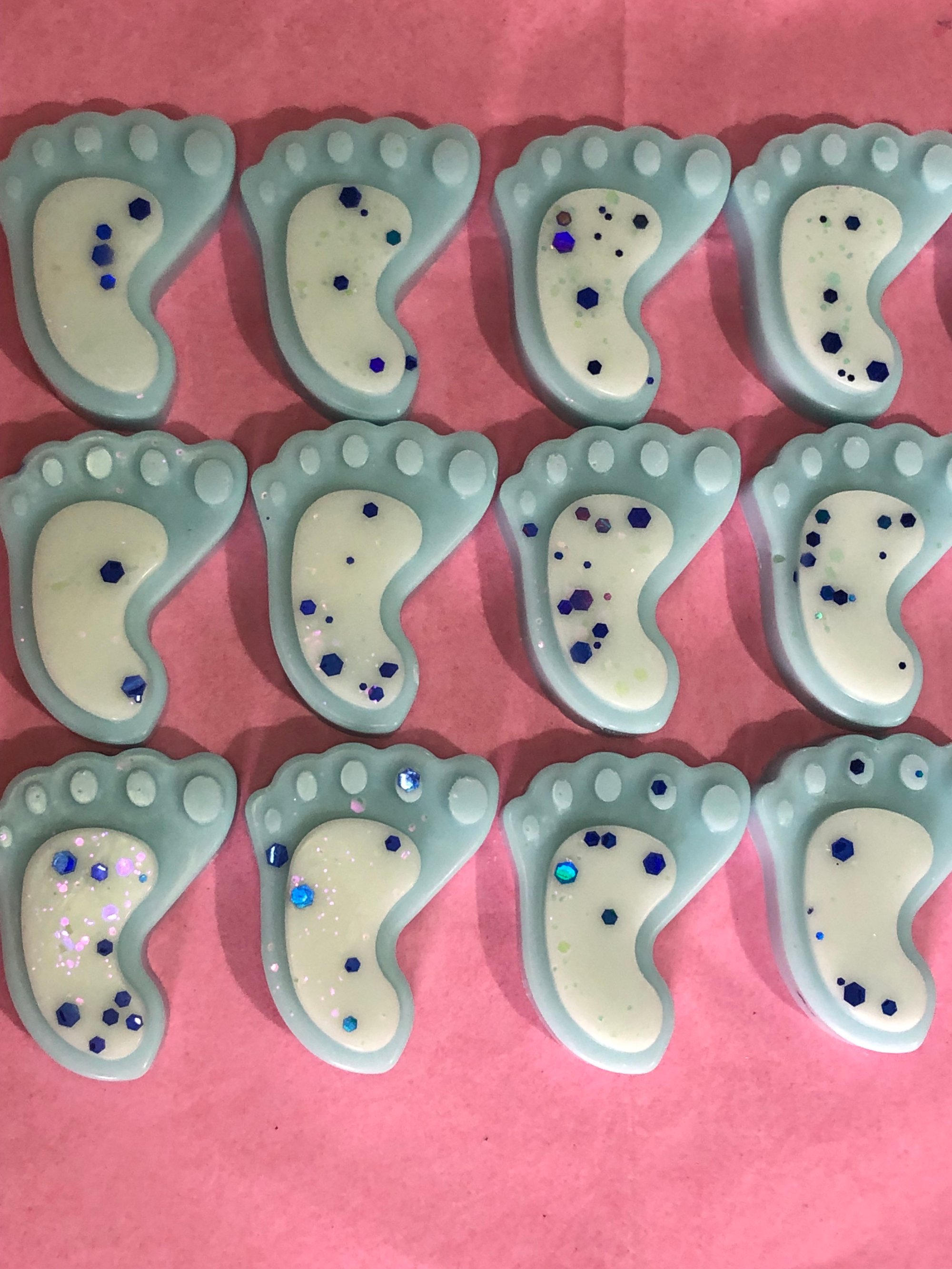 Please pop a note in if you would like your baby feet in a colour or different scent and with or without glitter.
