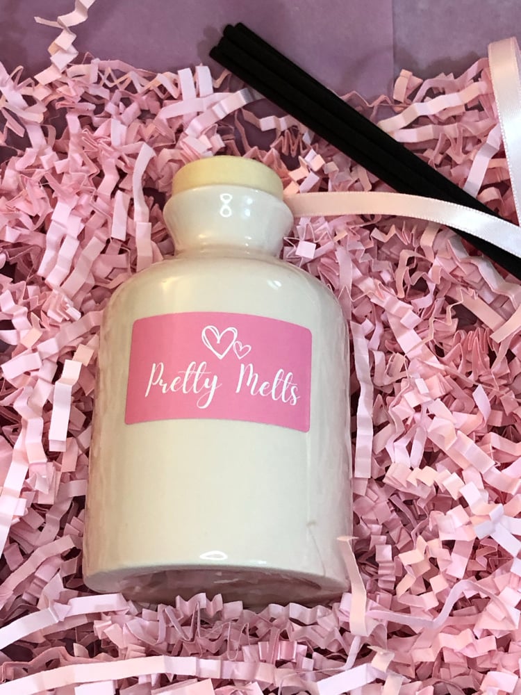 Reduced to clear - soft baby pink ceramic Reed diffusers available in a selection of our beautiful scents, comes with six fibre feed sticks all wrapped up in a pink box.